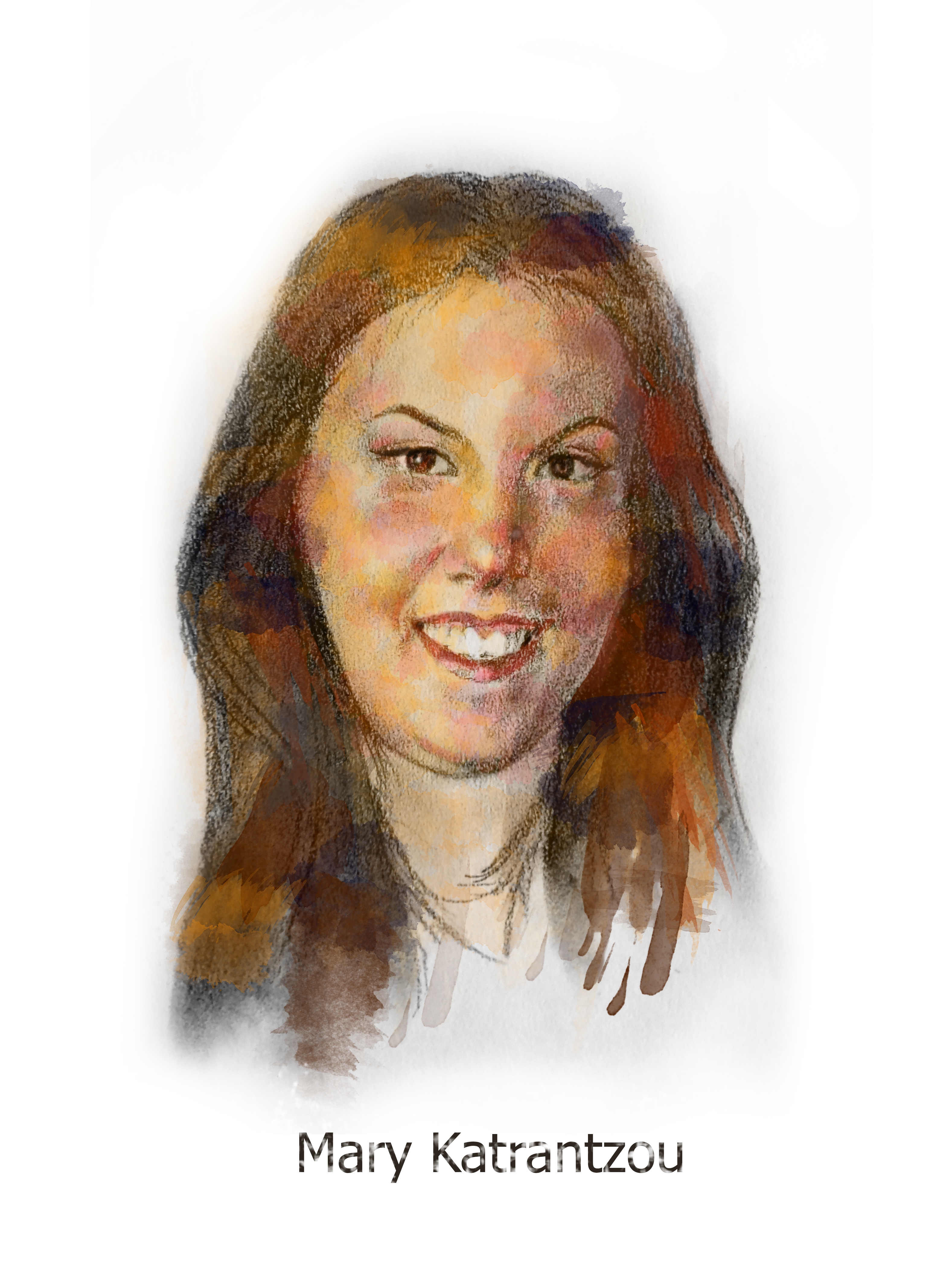 This is an artist's impression of Mary Katrantzou who founded her namesake brand in 2008.